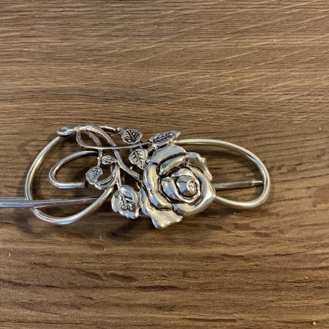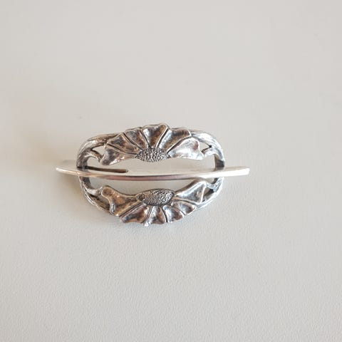 Smukt skydehårspænde i sølv fra guldsmed Henning Stryhn sælges.
