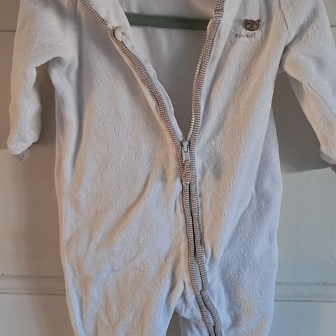Så fin lysegrå heldragt i Sweatshirt stof i str.80. Fremstår som næsten ny.
