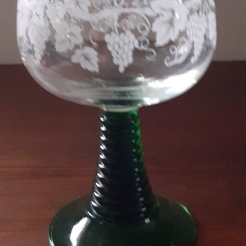 De flotteste Rømer vinglas på grøn stilk. Med og uden vinblade motiver