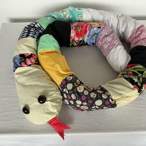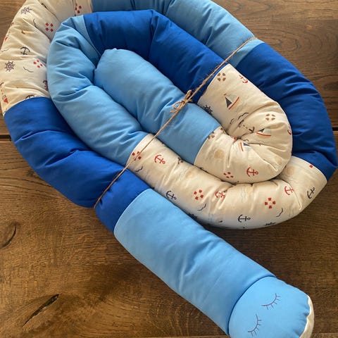 Kæmpe sengeslange sælges . Den måler ca 4 meter . Der er 4 puder som matcher til slangen . Det hele er hjemmesyet . Det er brugt meget lidt og fremstår som nyt . Det sælges samlet for 400kr