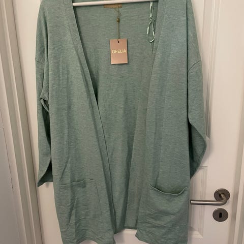 Helt ny behagelig vatteret Jakke / Cardigan - OFELIA i str. 36 / S. Materiale: 100% bomuld. Har lynlås forpå + 2 lommer. Små fine perler rundt i halskanten. Måler rundt under ærmerne ca. 100 cm. Længde ca. 76 cm. Se alle fotos. Købspris var 350 kr. Sælges for 85 kr. Må afhentes eller sendes forsikret med DAO + porto. Se gerne mine andre annoncer - mere kan købes med.