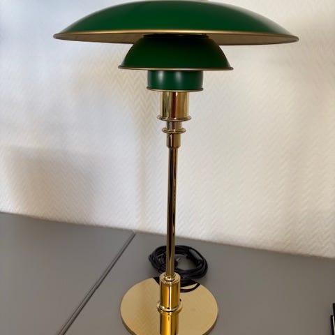 PH 3/2 bordlampe i messing med grønne skærme (jubilæumsmodel). Flot stand.
