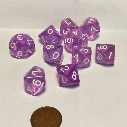 1 sæt bestående af 7 Polyedriske harpiks terninger af mærket ? Kan ikke finde navnet på den. No Name 😄