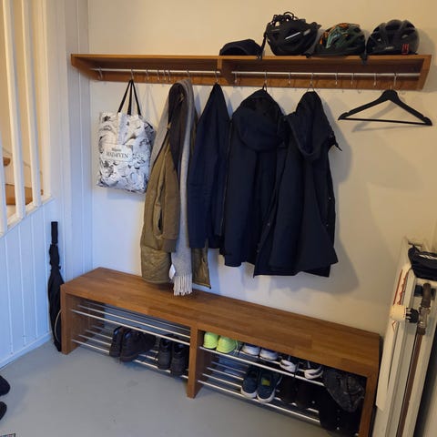Hattehylde lavet i massiv egetræ, Lavet på eget lille værksted, Hattehylden er et smukt møbel til din entré.