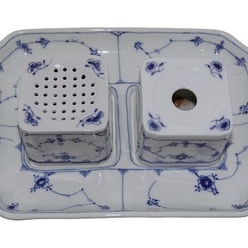 Antikt skrive sæt fra Bing & Grøndahl med blå malet motiv, fra årgang 1853 - 1894.