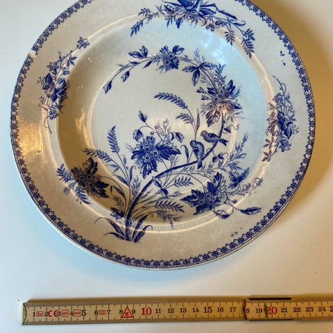 6 fine dybe tallerkener i fajance fra Gustavsberg købt i Sverige; 24 cm i diameter. Smukke og forskellige motiver.