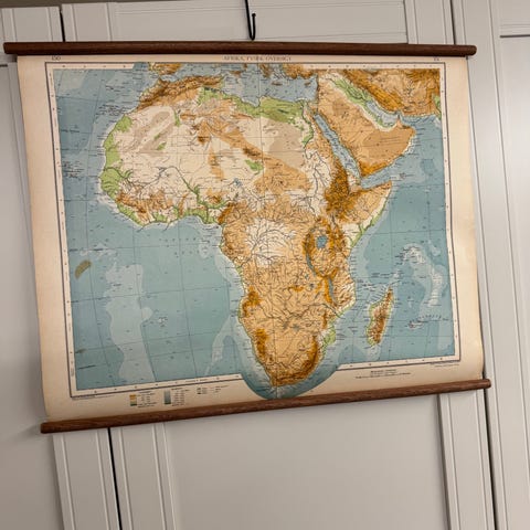 Fedt Afrikakort med ramme uden glas, måler 116 x 86