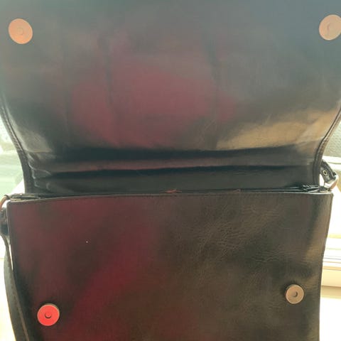 Lille sort skuldertaske i god stand fra Cossini.