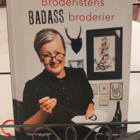 Forskellige broderisæt indeholdende mønster, stof og garn.