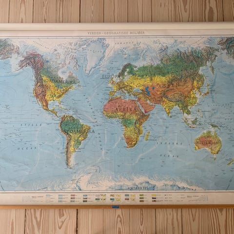 Find flere modeller og størrelser (fx 150, 175, 190, 200, 210, 220, 260 og 280 cm bredt) under mine andre annoncer på min profil eller ved at søge på “emmas-skolekort”, fx verdenskort og kort over Norden / Skandinavien, Europa / Europakort og Storbritanien. Jeg sælger ud af min samling. Derfor de mange kort.