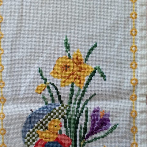 Fint påskebroderi, evt som lysedug eller deko på påskebordet