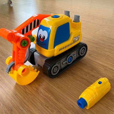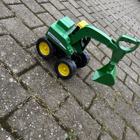 Rigtig fin og robust gravemaskine i træ. Gode hjul, der gør at den kører godt.