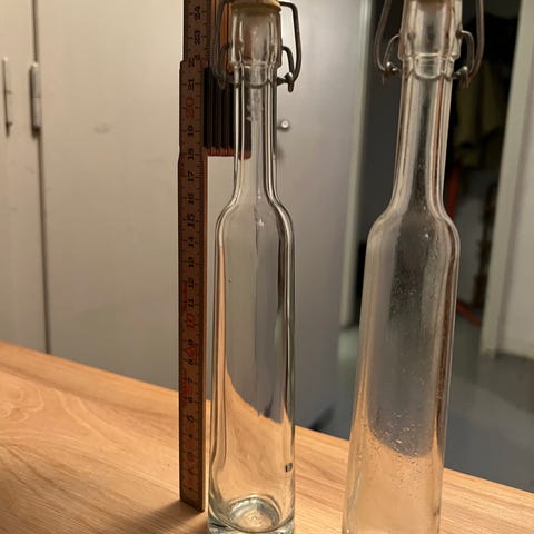 Står med få brugs spor, dog har flasken en revne.