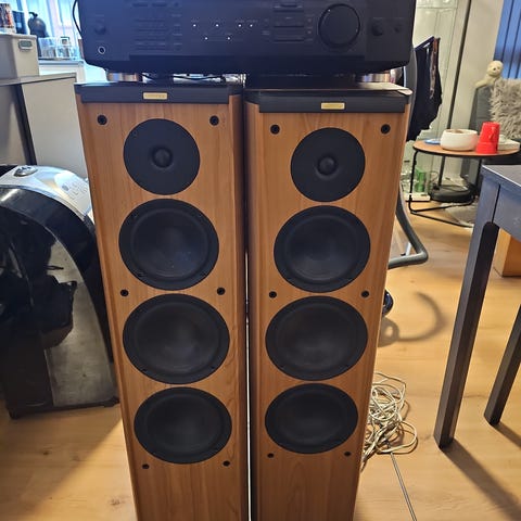 Vild god lyd med den receiver og de tilhørende højttalere. Surround lyd og subwoofer. Skal hentes i Lynæs