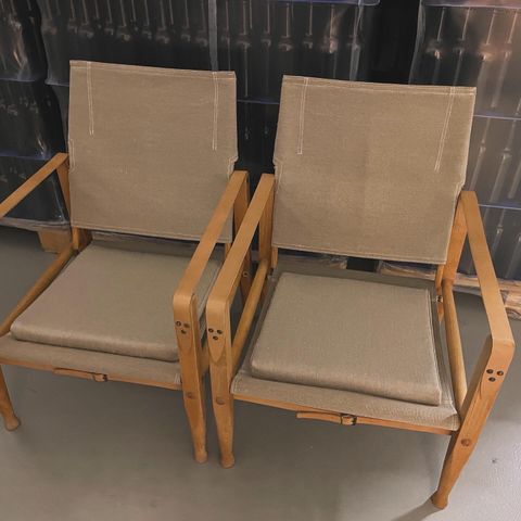 Sælger denne Kaare Klint Safari stol, perfekt til enhver stil. Klassikeren er i hvide canvas og stellet er i eg.
