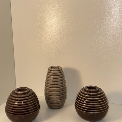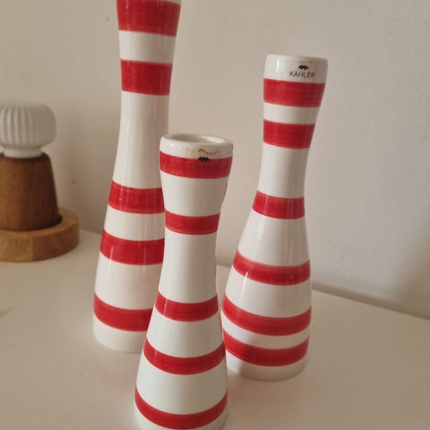 3 stk i brune nuancer, 11,5 cm 9 cm og 8 cm. Alle med kâhler label, design Marianne Nielsen, passer til alm. kronelys. alle som nye .sælges samlet. Sender gerne, ikke med fiks færdig. porto oveni.