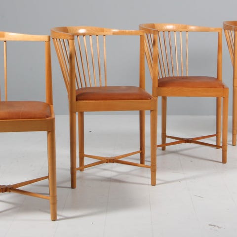 Børge Mogensen Ruder Konge armstole. Flot i teak og cognac læder med patina. 2 tremmer defekte se billeder. Sælges samlet for 4.000 kr.