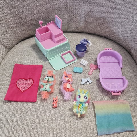 Bamsefamilie, Scruff-a-luvs Families, Sød, pjusket 'Scruff A Luv' kat med killinger. De kan vaskes, tørres og rede deres pels med den medfølgende børste. Der medfølger: sutteflaske, børste, tøj til killingerne.