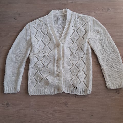 Dejlig varm strik cardigan . Mål : længde ca. 80 cm . Armlængden ca. 58 cm. Brystvidde ca. 108 cm. Kasse 2