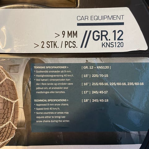 Snekæder, ubrugte. 9mm - Størrelse 13"-16" Se billede om de passer til dine dæk