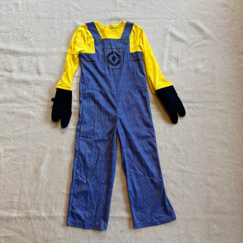 Superheltedragt med kappe og bånd (bånd kan bruges om hovedet, om livet eller man kan klippe hul til øjne og bruge den som maske). Str. 128-140 og synes den er alderssvarende. Desværre ikke nået at blive brugt, da sønnen tog et ordentlig gro-ryk. Han har dragten på på de sidste billeder, han er i str. 152 nu og den stumper derfor på benene. Stadig med mærke på.