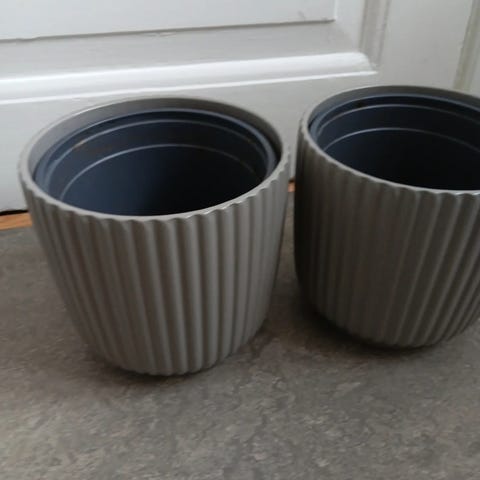 Sort krukke i frostsikker polystone. Krukken har en rund form med rillede detaljer.