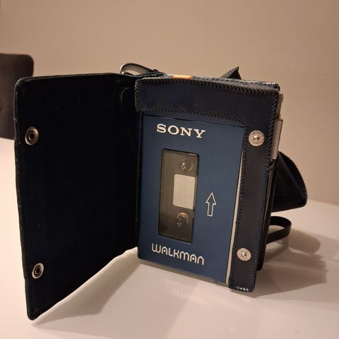 Har læder etui og helt ny sele og cassette holder. Batteri dækslet har fået et lille tryk. Denne model er den mest søgte efter og priserne er steget meget. Den har lige været igennem en service hos Sony hvor alt er blevet renset og smurt samt skiftet drivremmerne. Det er første gang den er blevet åbnet.