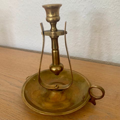 5 armet lysestage, Messing, Vintage lysestage til 5 lys. Har aldersrelateret brugsspore og enkelte steder lidt rester af stearin. Den er i messing dog ikke pudset op. En rigtig flot brocante sag