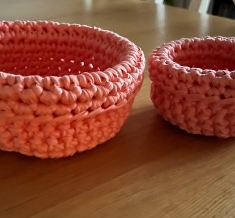 Hæklede brødkurve i mange farver, Hæklet, Min mormor hækler disse smukke kurve. De kan bruges til brødkurve eller alt muligt andet. Kun fantasien sætter grænser.