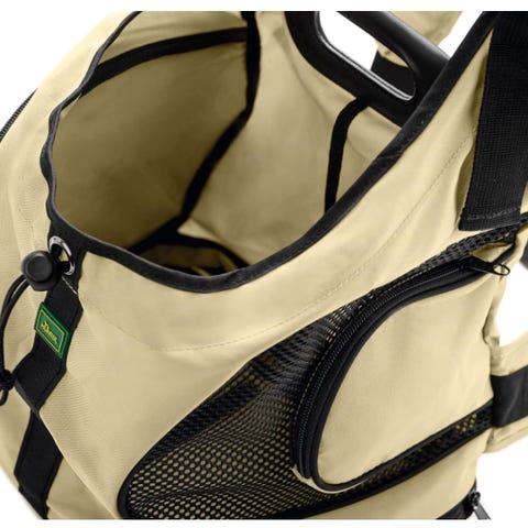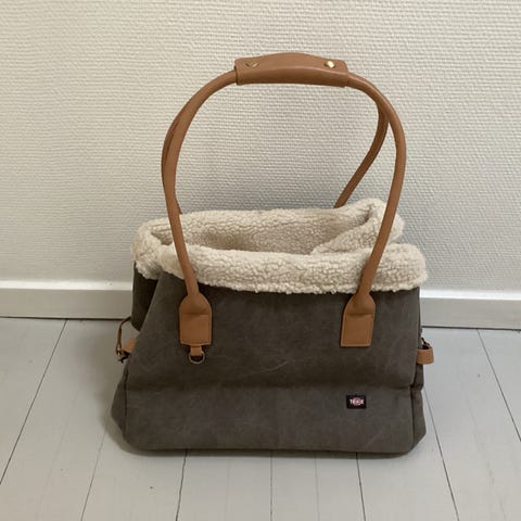 Tasken er fremstillet af slidstærkt polyester i særlig høj kvalitet. Den kan åbnes i toppen og på fronten, hvor der er indgang ved hjælp af lynlås. Indvendigt har den en sikkerhedsline til fastgørelse af din hund, så den ikke springer ud af tasken. Den er desuden forsynet med en netindsats, der giver god komfort og lufttilførsel.