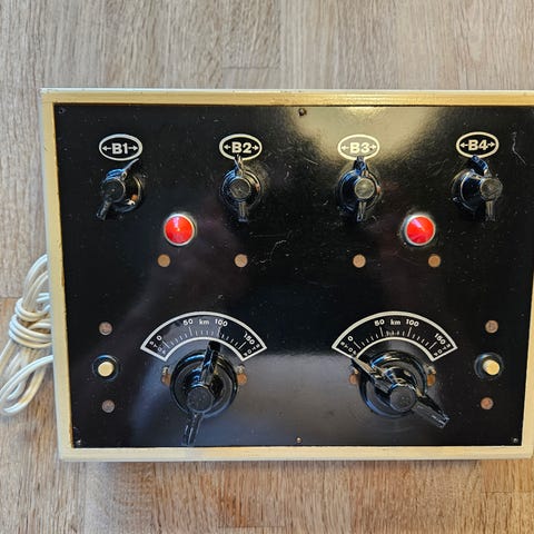 Strømforsyning. Trafo. Vekselstrøm. Virker til Märklin. Den ene med rødt lys er solgt. 3 stk tilbage. Den øverst til højre er solgt. Pris pr. stk