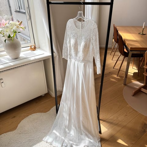 Brudekjole, Lily, str. M, Hvid, Næsten som ny, Renset og står som ny.