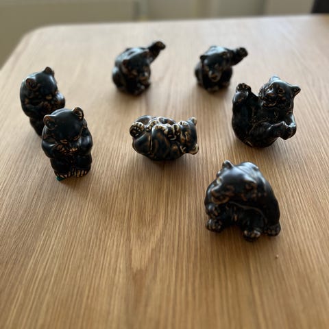 4 stk. Bjørneunger i brun stentøj af Knud Kyhn sælges. Fejlfri!
