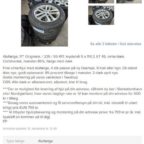 225x65x17 alufælge , vinterdæk , tpms ventiler , kørt 2 sæsoner , har siddet Nissan qashqai