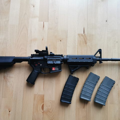 Her er tale om en badass Classic Army M15A4 SPC, som jeg har købt fra ny og fået bygget totalt om. Alt indmad er blevet skiftet i den, og er blevet skiftet af hhv. Wartoys og senest af Hardballshoppen i 2019. Har papir samt regninger fra Hardballshoppen at den skyder 2,59J, altså 119-120 m/s med 0,36g. Her er riffel/dele for ca. 13.000 kr.