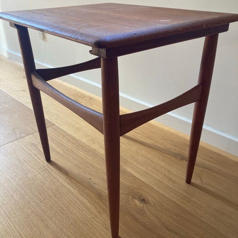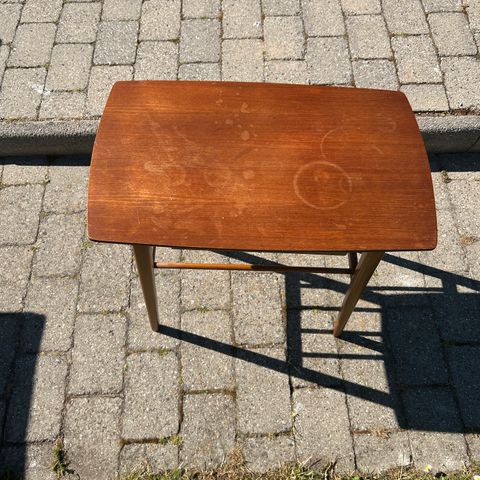 Lille brud som kan laves og et lille bitte nag i bordpladen. Ellers dejlig lille solid bord.