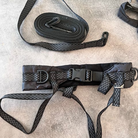Fin skisele til børn med elastisk stop. Har været med og prøvet på men ikke brugt, da vores mindste på 5 ikke ville i en sele som en baby.