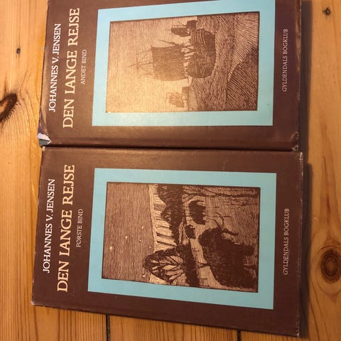 Johannes V. Jensen, Den Lange Rejse 1 & 2, udgivet i 1949 på Gyldendal. Vignetter af Ib Andersen.