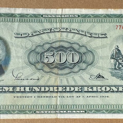 500kr seddel fra 1967. OJ ersratningsseddel. Med brugsspor