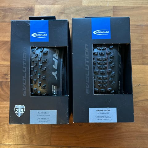Et par enduro dæk, rigtig hidsige ned af bakke. De er 2.35 i bredde 29” tommer.