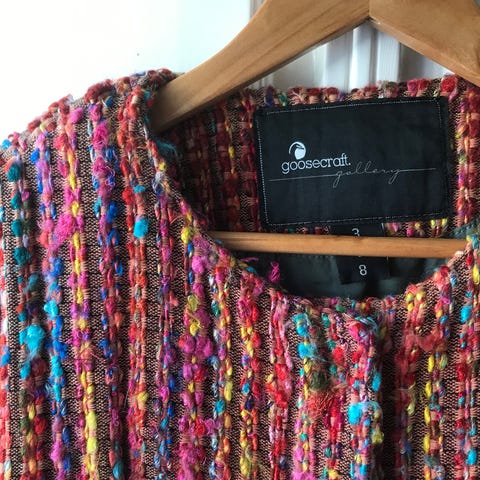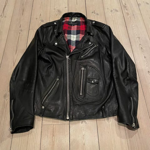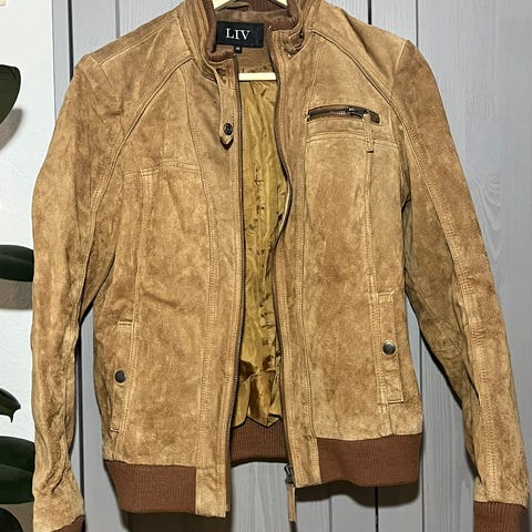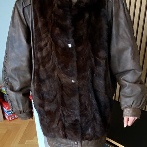 Jakken er i god stand, men brugt. Den er lidt mørkere i ruskindet øverst på kraven ellers ingen pletter eller andet.