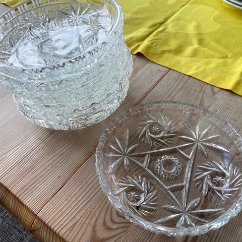 Assietter i presset glas..