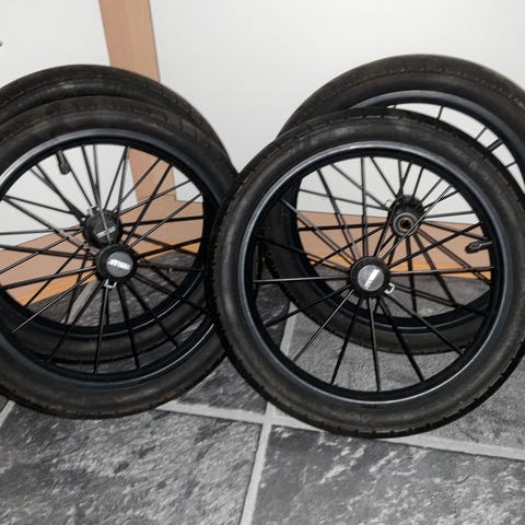 2 stk Helt nyt dæk med fælge til barnevogn.