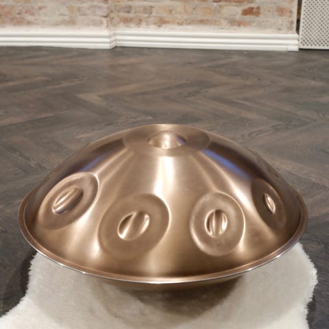 Handpan (hangdrum) med taske, smuk syngeskål og virkelig lækre rytmeinstrumenter i naturmaterialer. Brugt meget lidt og fremstår derfor som helt ny. Det hele sælges for 4.000kr.
