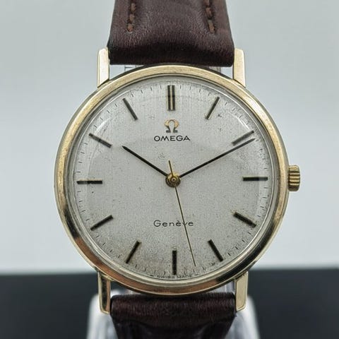 Flot Omega de ville tank cal.620 manuel optræk fra 1969. 23x27 mm. Monteret på en 19mm rem, men burde have en 20mm. Lettere ridser på original plexi. Går og holder tiden. Serviceniveau ukendt. Leveres i Omegaæske.