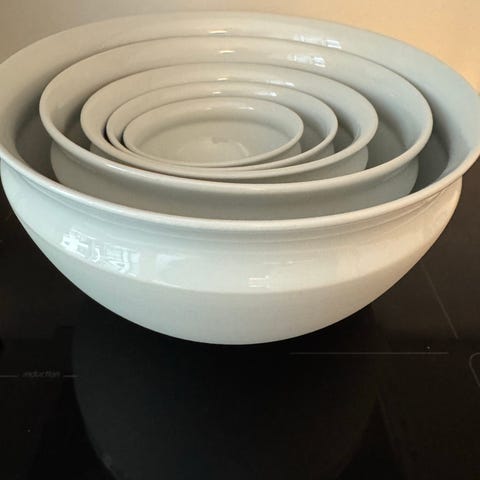 3 hvide margretheskåle. Brugt et par år men fejler ikke noget. Har få ridser men intet af betydning.