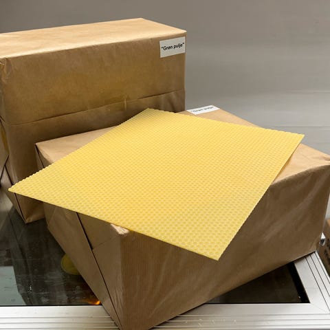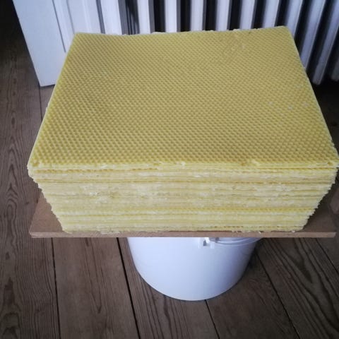 Valset bivoks i størrelse 12 x 10. Sælges i hele kg for 120 kr pr kg eller 5 kg pakker for 600 kr .Bi voks tavlerne skal afhentes i Galten.
