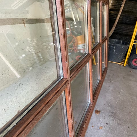 Vinduesparti, mahogni, b: 200 h: 115, de 2 yderste vinduer kan åbnes .har 2 stk prisen er per stk..