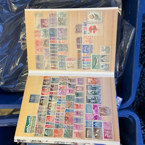 To cigaræsker og to mapper (mapperne er ikke fyldte med frimærker sælges.