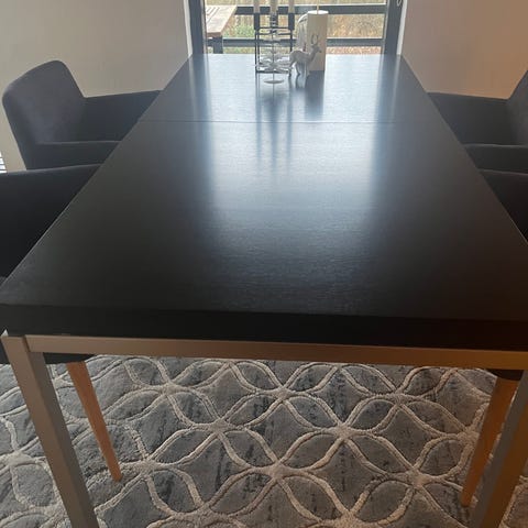 Flot spisebord fra Boconcept i sortbejdset egefiner. Kan trækkes ud til længere længde 200 cm.
